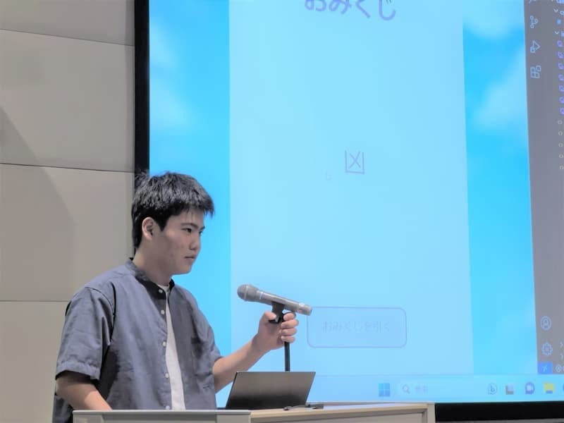 最後には、講義で習ったおみくじアプリに工夫を凝らして一人ひとり発表いただきました。