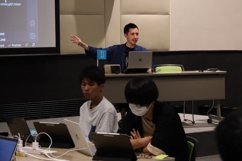 講師は、G’s ACADEMY FUKUOKA主任講師である大杉先生が担当。プログラミングをする環境を整えるところから、一緒に手を動かしていきます。