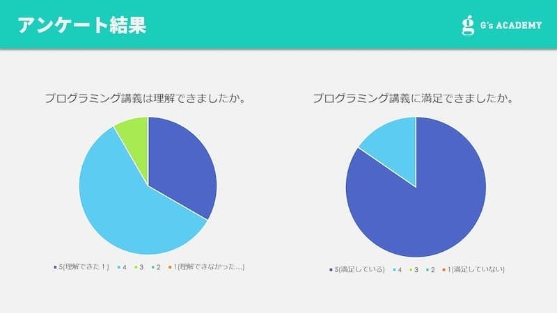 最初はプログラミングを難しいと感じている方が多かったようですが、自らに向き合い、オリジナルアプリを完成させることができたことにより、達成感をもっていただけました。