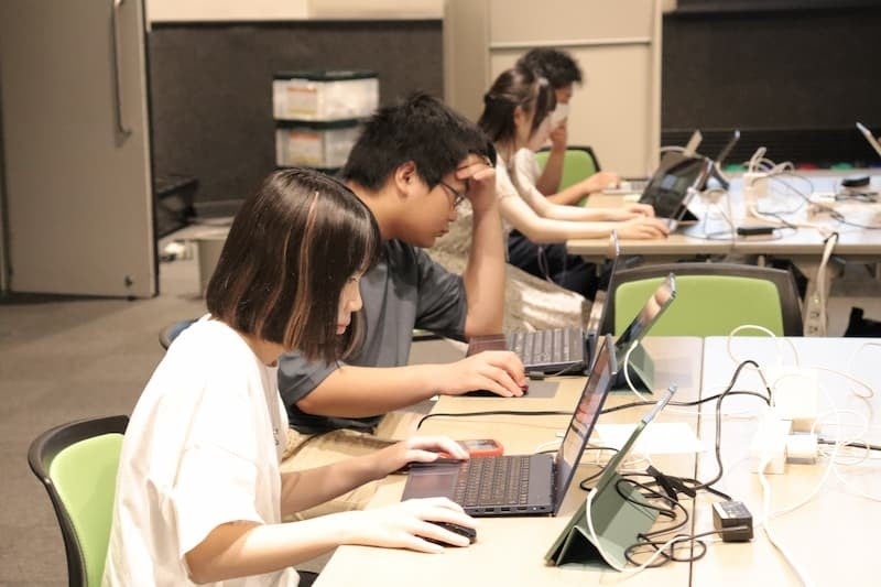 皆さん真剣な表情で、アプリ制作に取り組んでいました。