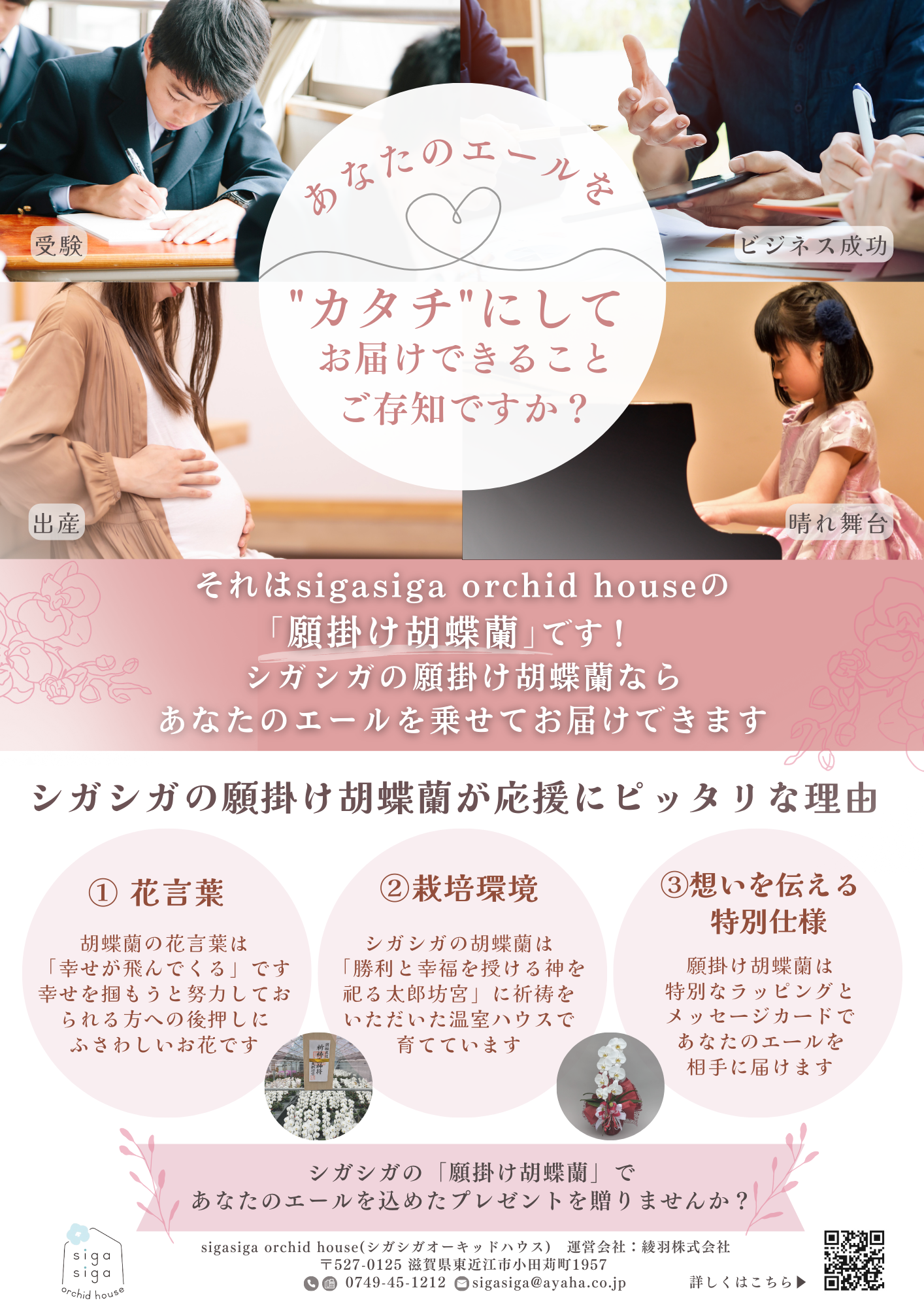 滋賀県にある綾羽株式会社が取り組む、「贈ることでCSRに貢献する胡蝶蘭の栽培と販売」の事業「sigasiga orchid house(シガシガオーキッドハウス)」がこの度、新商品の発表をしました。