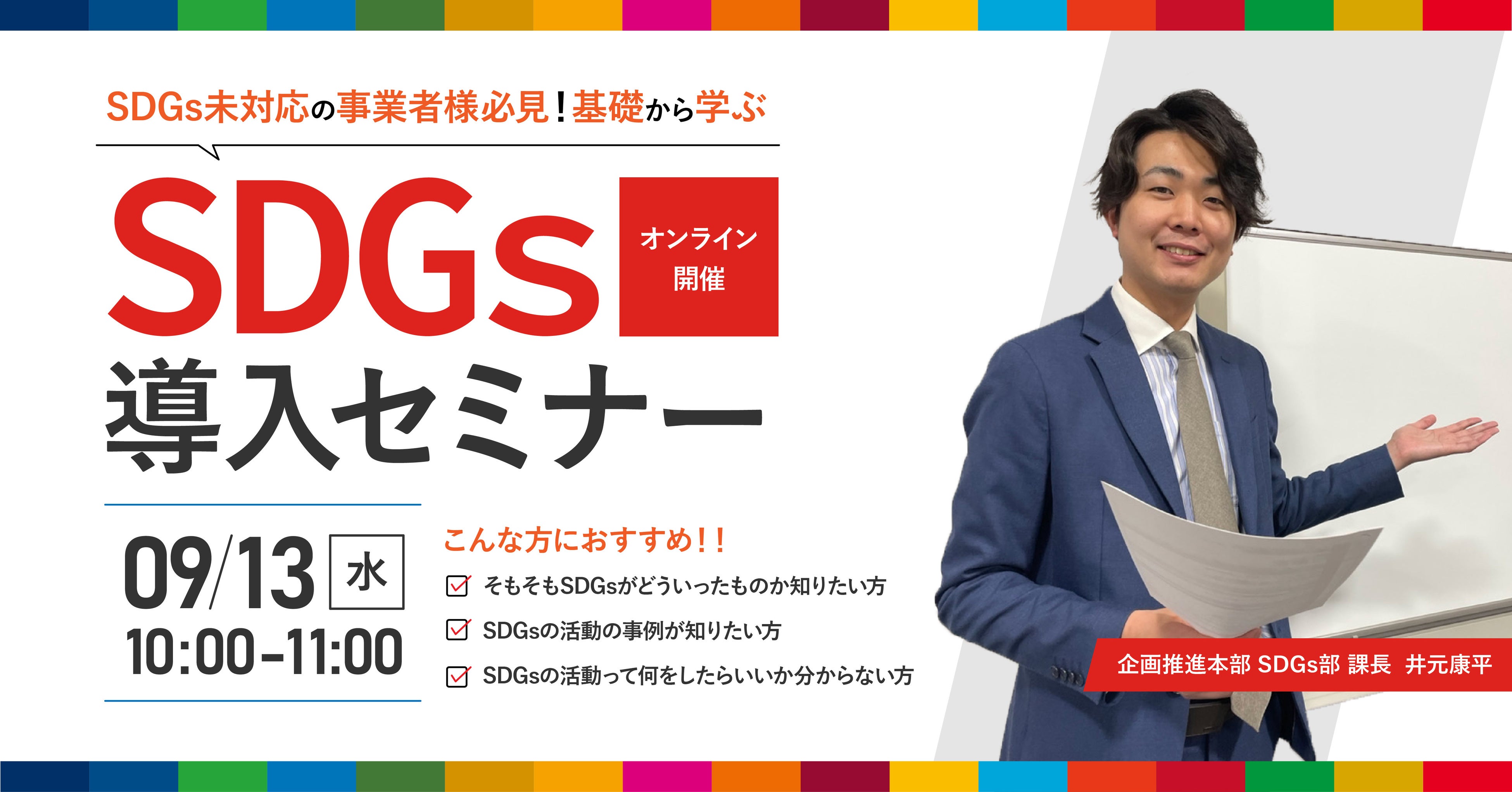 そこで今回、【SDGs未対応の事業者様必見!】『基礎から学ぶ SDGs導入セミナー』を開催することにしました。