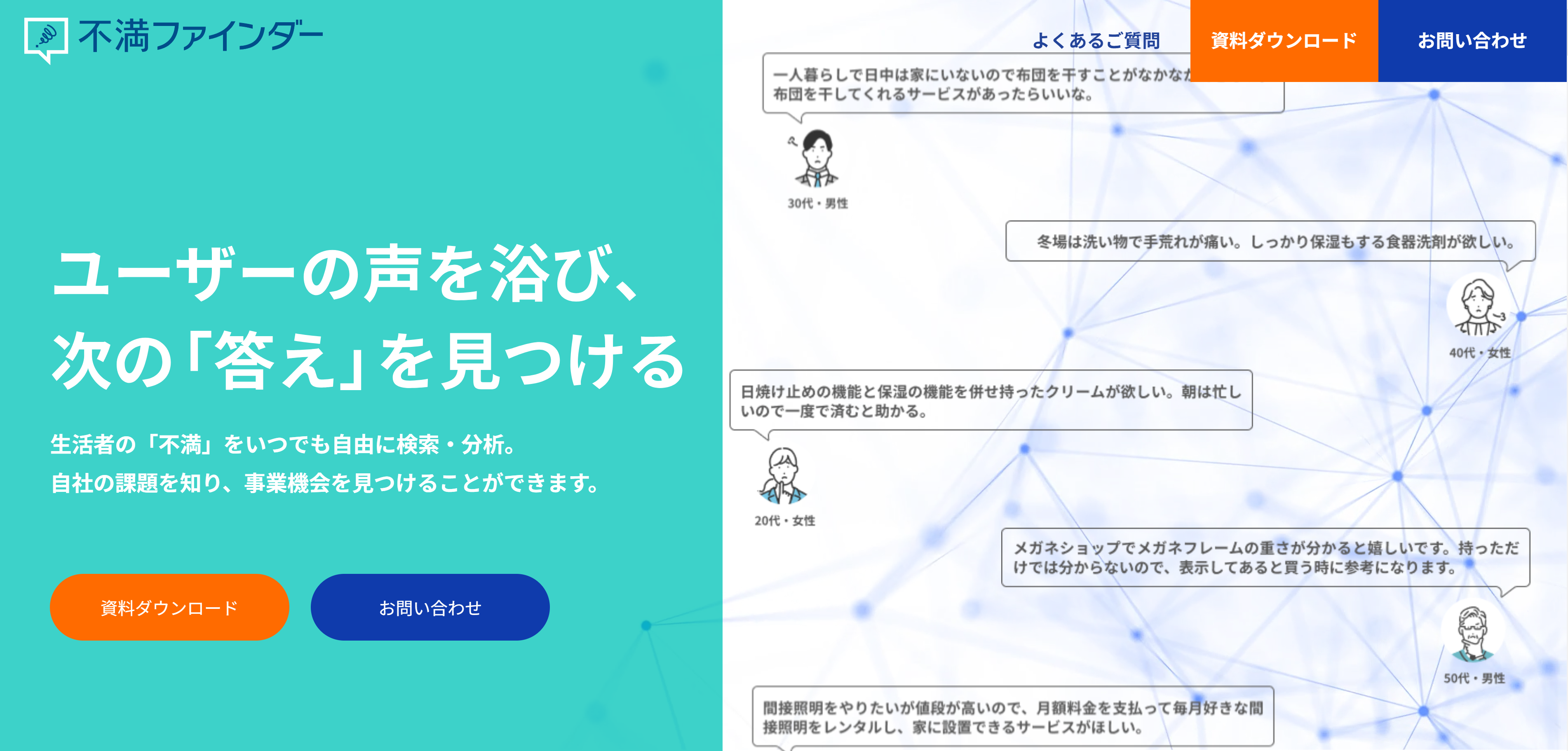 不満ビッグデータを価値に変える「不満ファインダー」(https://fuman-finder.com/)