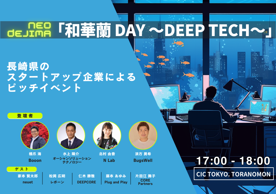 イベントページはこちら(CIC Tokyoホームページへ):https://venturecafetokyo.org/sessions/neo-dejima-deep-tech/