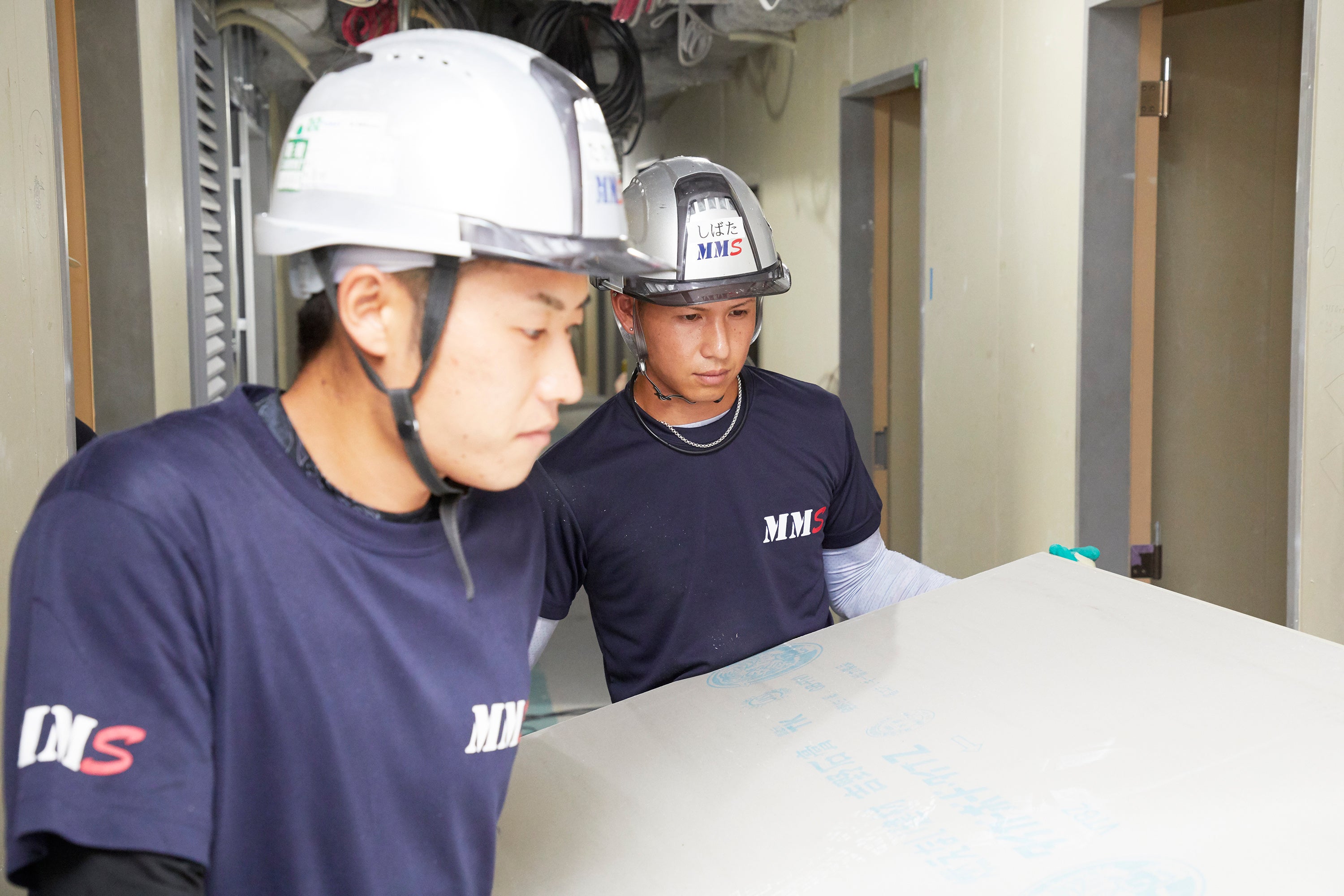 年々建設業の担い手が減少している中で、MMSでは、「ハタラクに、自由を。」をテーマに、正社員でありながら自由に働ける完全自己申告でのシフト体制を整え、建設業で働く若者の入職を進めており、今では全国25か所に営業所を構え、現場で働くスタッフとして正社員500人、契約社員200人を