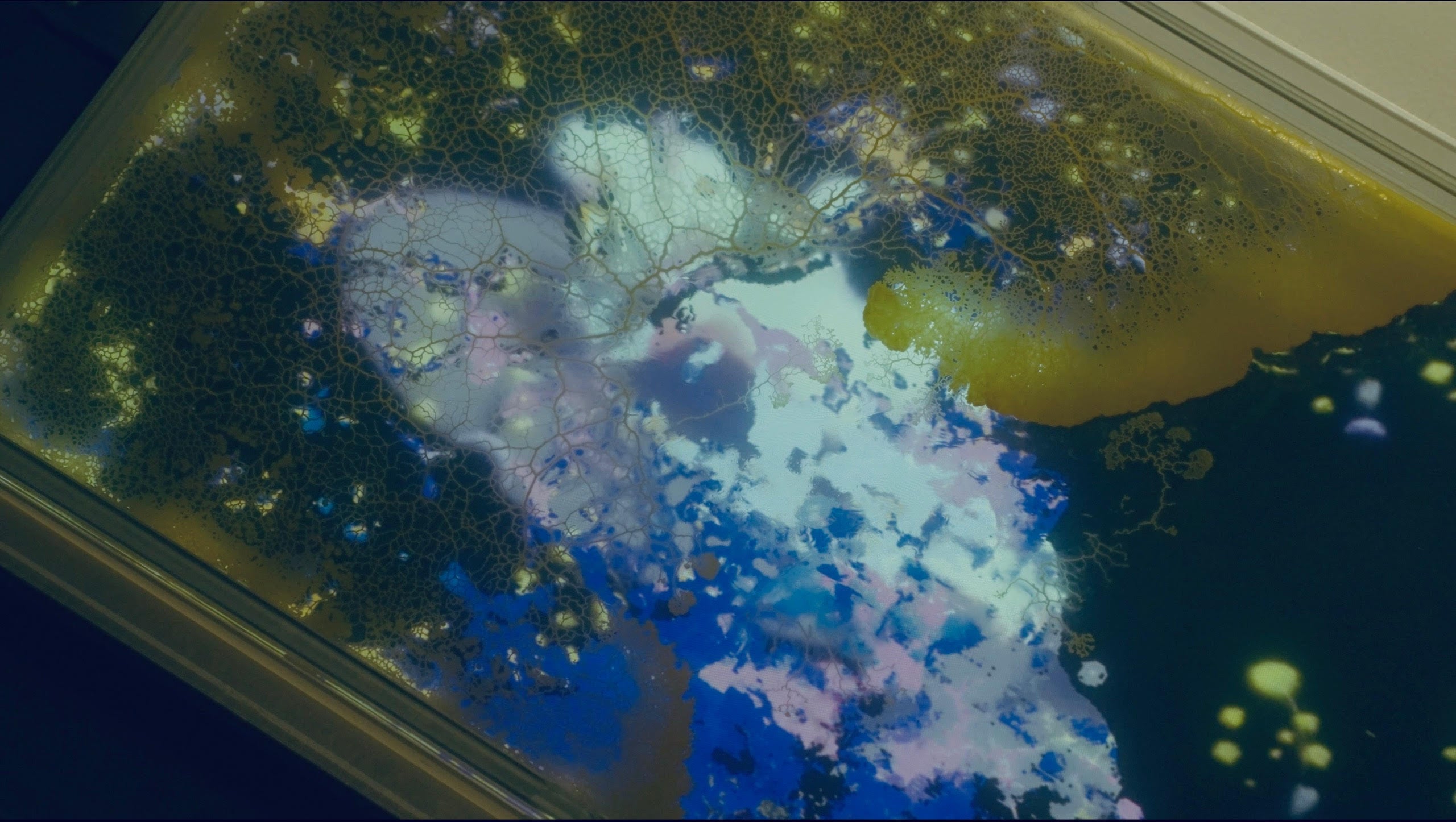 本作品には、iPad上で培養された粘菌 、粘菌の動きに合わせた超低速で動画が再生されているiPad、映像のプロジェクションが含まれる。粘菌は、画像処理プログラムによって動画を「鑑賞」し、「編集」する。静止画に見えるほど超低速の動画と粘菌は、人間にとって動画と感じられる速度に変換され投影される。