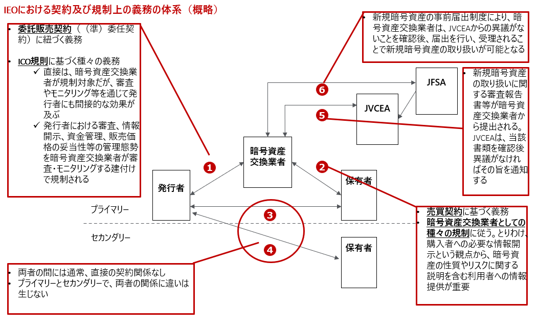 日本において暗号資産交換業者が発行者に代わって暗号資産を販売する場合は、認定自主規制団体の自主規制規則である「新規暗号資産の販売に関する規則(ICO規則)」に服する必要があります。この規則においては、発行者と暗号資産交換業者の間で、審査、継続開示、調達資金の目的外使用の禁止などの自主規制を定めており、これが私法上の委託販売契約の中の義務として盛り込まれる可能性があります。