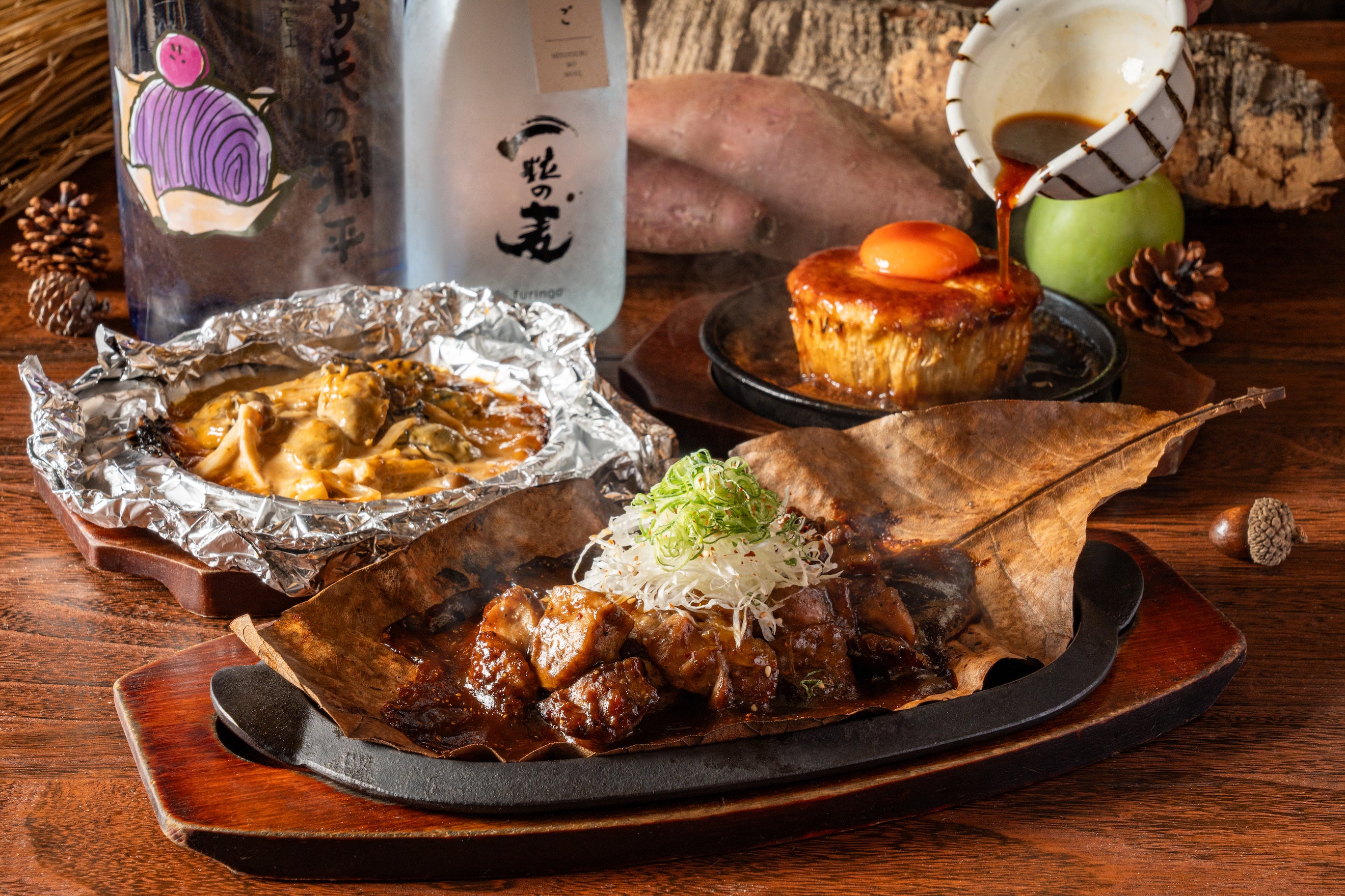鉄板の熱が漂わせる朴葉と特製味噌の芳醇な香り、鼻をくすぐる山椒が“食欲の秋”の気分を刺激する炭火焼です。