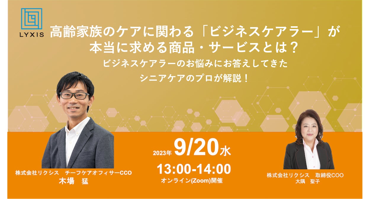 そこで今回のセミナーでは、ビジネスケアラーたちが今何に困り、どんな商品・サービスを求めているのかを、多くのビジネスケアラーのお悩みにお答えしてきたリクシスならではの視点でご紹介いたします。