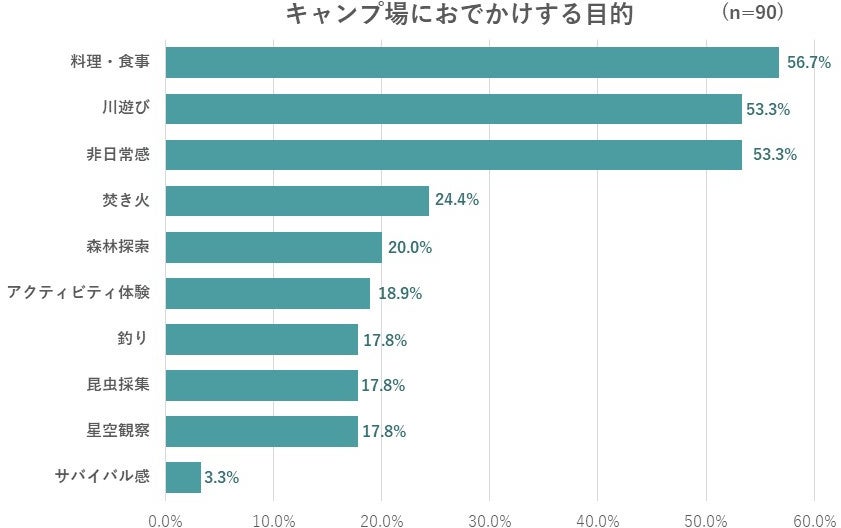 - 目的は「料理・食事」「川遊び」「非日常感」が上位