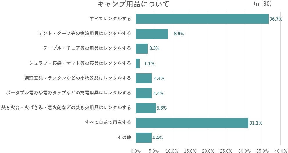一般的にキャンプに行くにはキャンプ用品が必須です。必要なものも多く、施設内でキャンプ用品をレンタルしている施設も多くあります。では、キャンプに行くファミリーは、キャンプ用品をどのように手配しているのでしょうか。