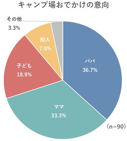 - キャンプ場おでかけは「パパの意向が強い」場合が最多で36.7%、次点で「ママ」が33.3%と続いた