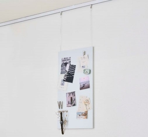 壁に固定したレールに、ワイヤーを取り付けることで、壁だけではなく、天井も活用した独創的な空間装飾ができます。取り付け場所の変更・調整が簡単なので、気分に合わせて飾り付けを変えることができ、お部屋の空間をアレンジできます。