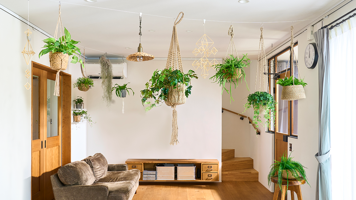 天井面には、レールに水平アタッチメントをつけてレール間をワイヤーで結ぶことができます。ワイヤーに水平用のアクセサリーフックを取り付けたり、市販のS字フックを利用して、植物やオーナメントなどを吊るすことができます。壁面には、レールに取り付けた垂直アタッチメントにワイヤーを吊るし、アクセサリー用フックを使ってアートなどを飾ることが出来ます。それだけではなく、SORAMO専用の3種類のコンテンツ(マグネットパネル、ラック、棚)もあり、より多くの飾り付けが楽しめます。
