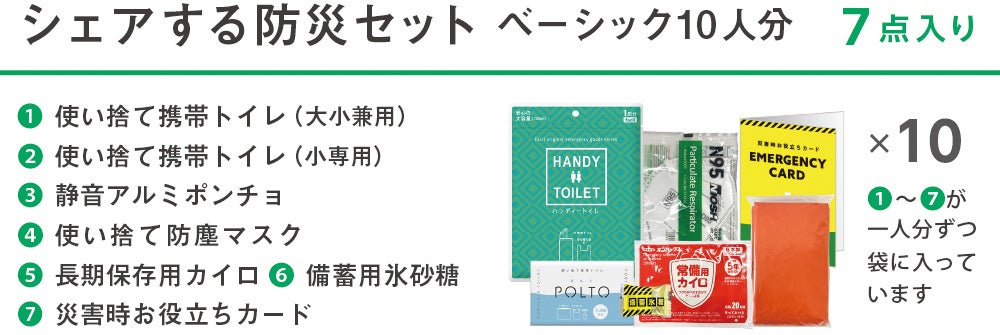 そうした中、様々な企業様へ防災対策を啓蒙するに留めず、当社自ら防災への備えを実践し社会へ貢献する施策として、この度の「シェアする防災セット」の導入を決定いたしました。