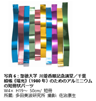 【多彩なる調和】 5作品の写真パネルと制作に関わる実物資料を展示