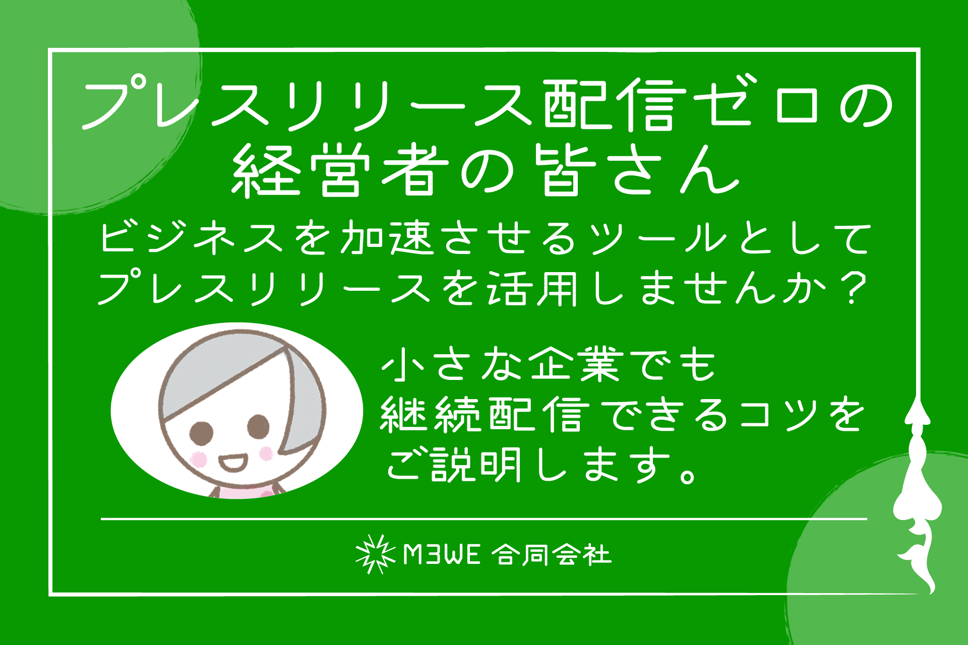 弊社は現在一人会社ですが、このような小さな企業でも様々なテーマでプレスリリースを継続して配信することが可能です。戦略とアイデア次第で、プレスリリースの配信は継続できます。またそれは、ビジネスを展開していく上においてとても大事なことです。