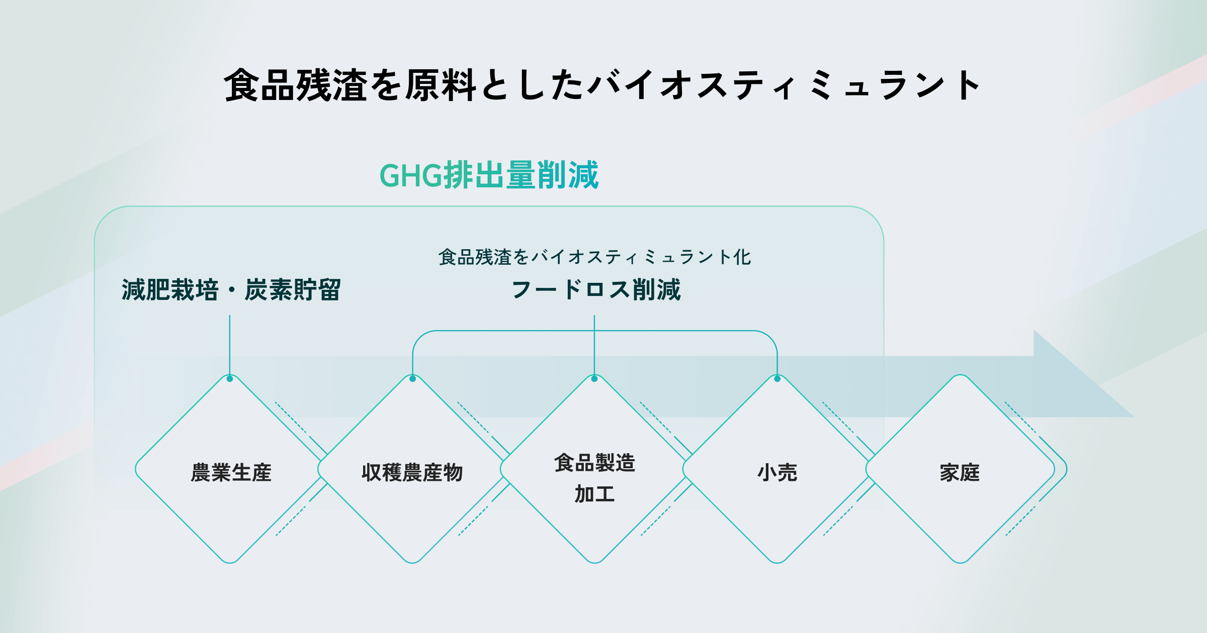 このうち、食品残渣を原料として開発されたバイオスティミュラント(以下「残渣型バイオスティミュラント」、注2)は、フードサプライチェーンの食品廃棄問題を解決しながら、農業生産量の拡大や化学肥料の使用量低減に寄与できるため、脱炭素社会の実現と、環境保全型農業の実現が両立できる画期的な生産技術です。