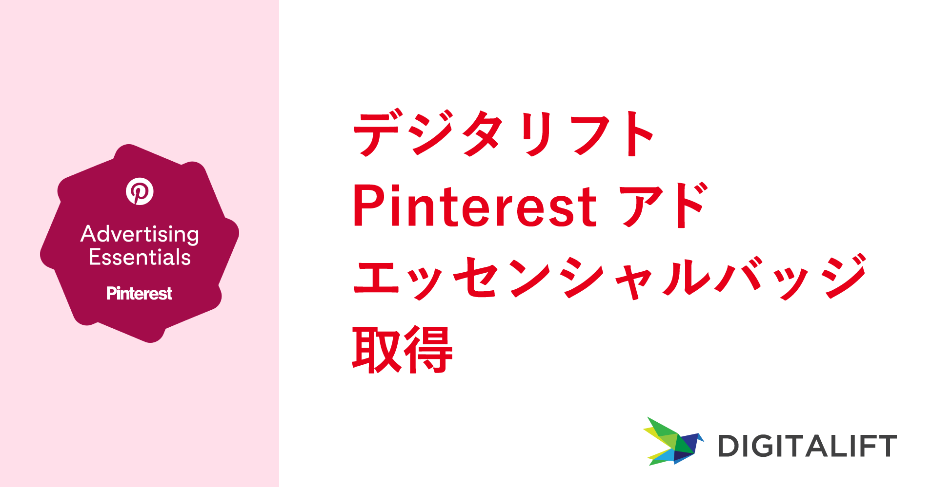 この度デジタリフトはPinterest アドにおけるキャンペーンの作成やターゲティング戦略、入札と最適化、キャンペーンの効果測定、レポートの実行などのスキルが認められ、「Pinterest アドエッセンシャルバッジ」を取得いたしました。