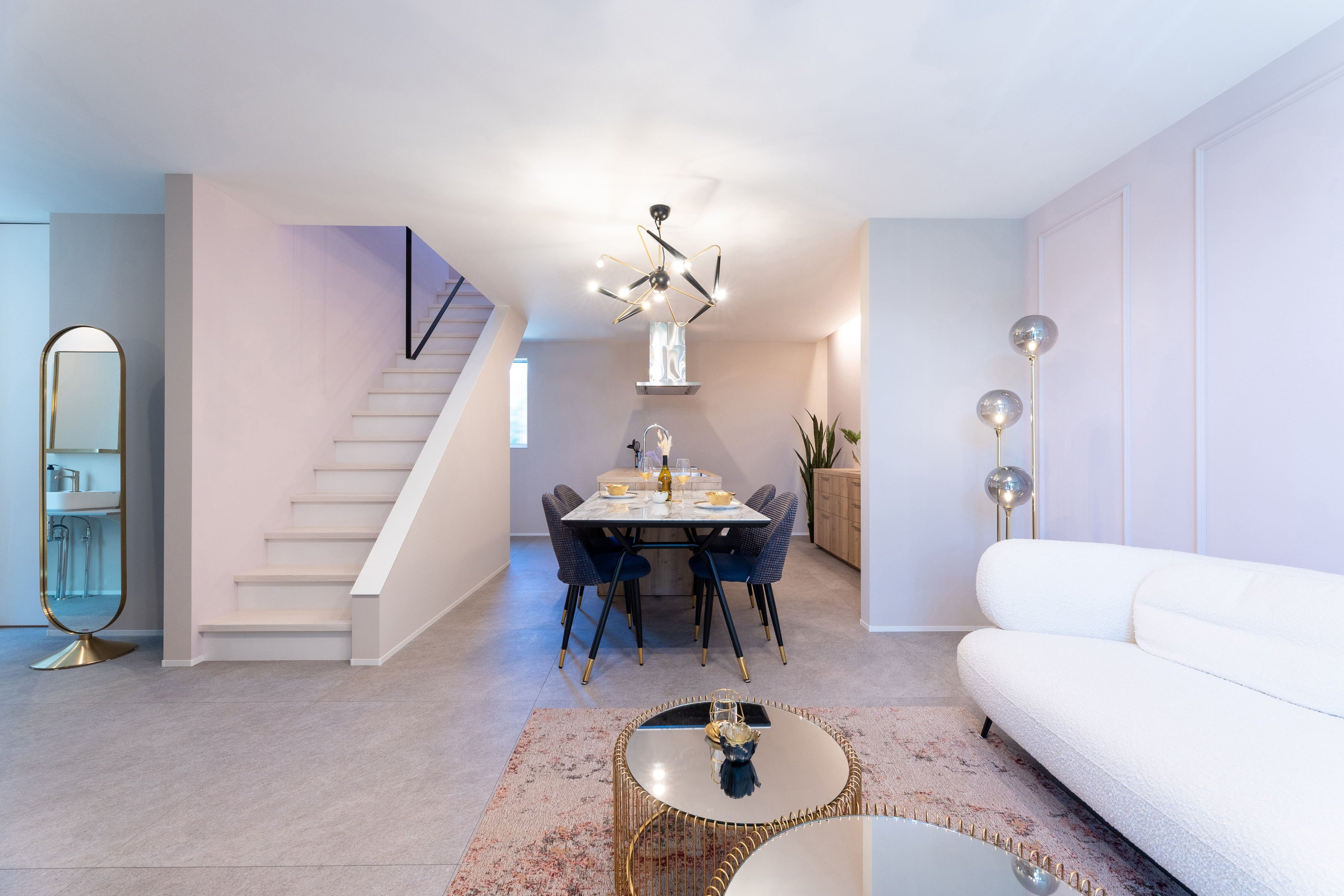 UNSTANDARDの基幹商品「NONDESIGN」を「KARE」の色彩豊かなアイテムでオールコーディネート。ブランドコンセプトは「ファッションのように暮らしを楽しむ家」。服を選ぶように、住まいも個性に合わせて自由に選ぶ時代へ。住まう人の多様性を叶えた。