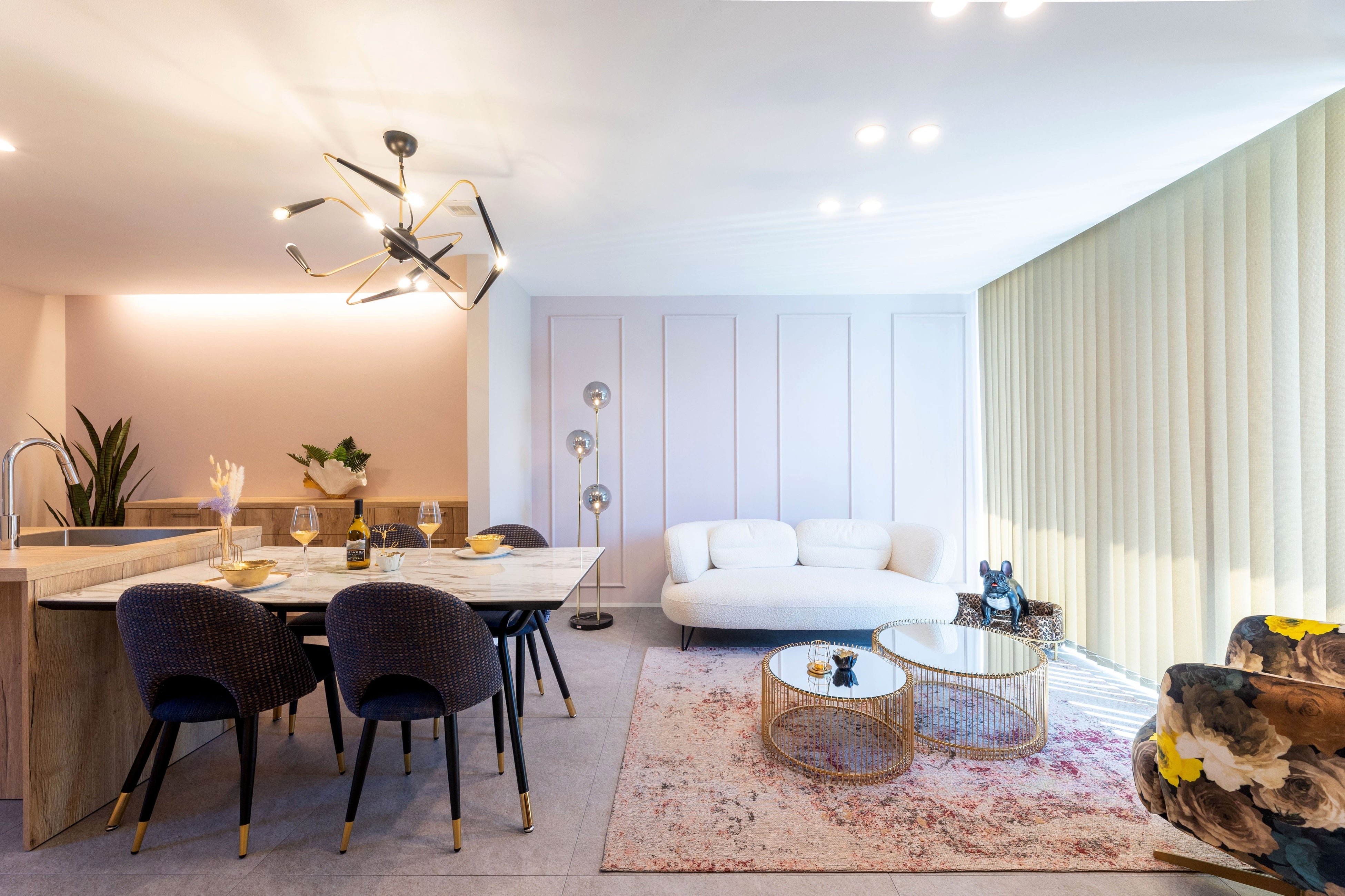 KAREのアートや家具をより引き立てる、細部までつくり込まれたモールディングや照明デザイン。立体感のある空間は優しい光に包まれ、優雅な時間が流れます。