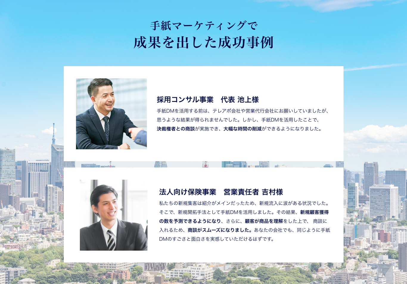 そのため、手紙営業の導入リスクを最小限にして、お試しが可能です。