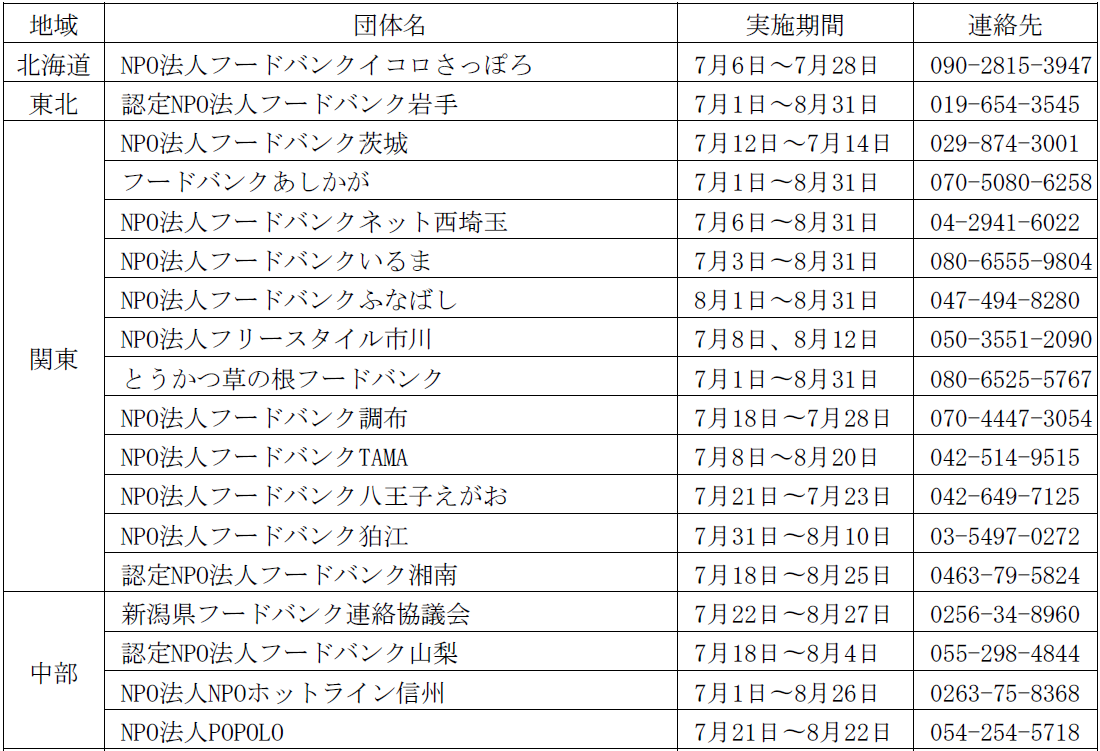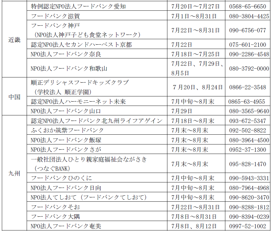 活動内容:給食のない夏休み期間中に子どものいる困窮世帯に対して集中的な食料支援活動を行う