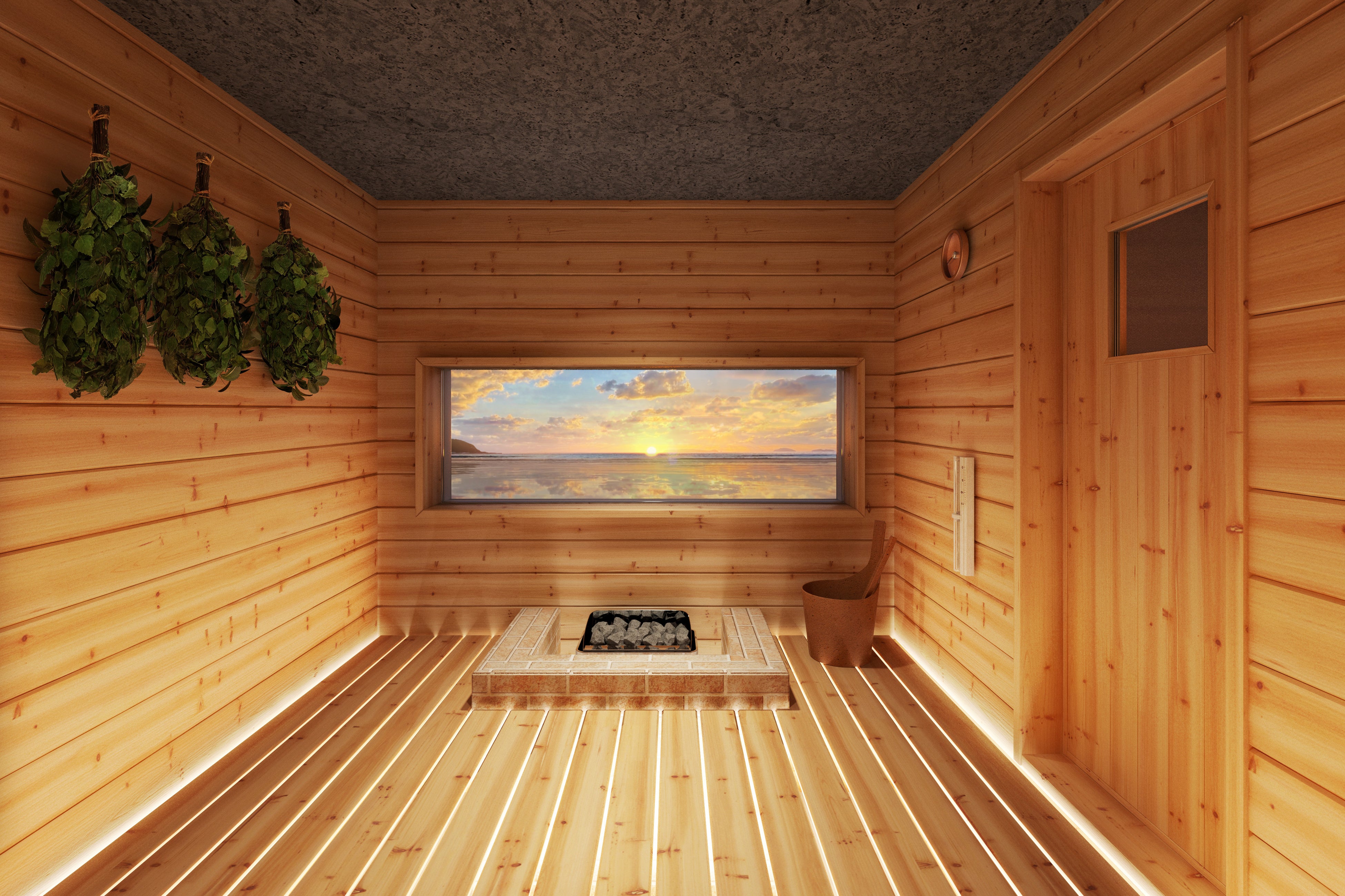 また、目線が上がる2階からの風景には、より開放的な印象をお持ちいただけると思います。「海が見渡せる」という付加価値にとどまらず、水風呂には地下水を利用していることや、セルフロウリュが可能であることなど、普段よりサウナを愛好されているお客様にもご満足いただける設計を意識しました。全室が海に面していることもそのうちの一つです。窓を開放することで、心地良い海風を感じながら整っていただけます。