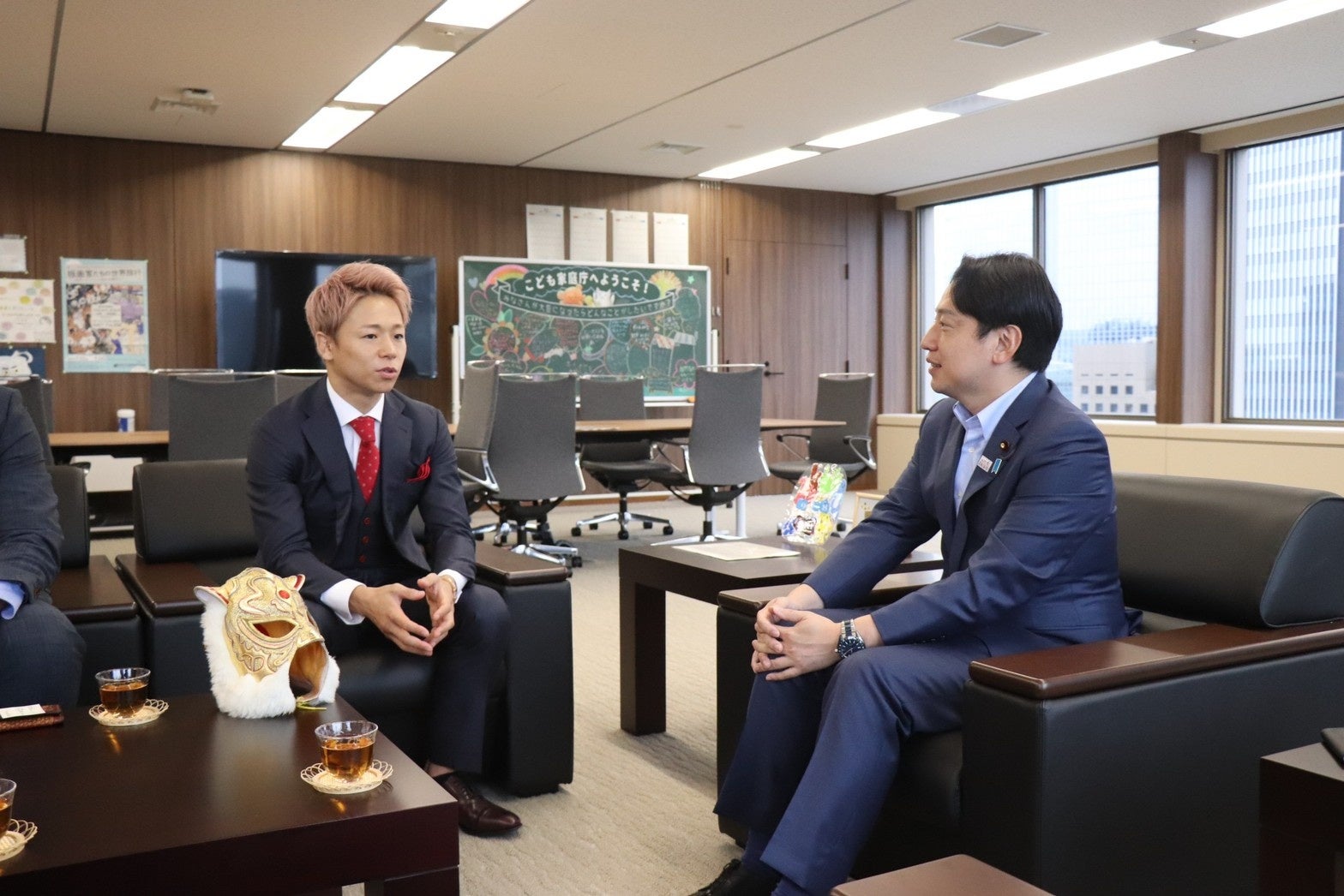 7代目タイガーマスクとして社会貢献活動を続ける格闘家の武尊がこども家庭庁・小倉將信 内閣府特命担当大臣を訪問した。