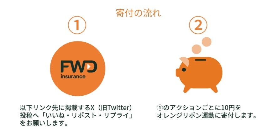 FWD生命保険株式会社 (本社:東京都中央区、代表取締役社長兼CEO:山岸英樹)は2023年7月より、子ども虐待防止のための『オレンジリボン運動』の支援に取り組んでいます。その支援の一環として、多くの方が利用し、拡散性の高いSNSであるX(旧Twitter)を通じた寄付活動を実施します。