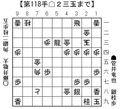△4三金    ▲3一飛    △2三玉 まで118手で後手の勝ち