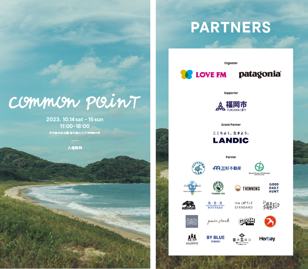 ラブエフエム国際放送はパタゴニア⽇本⽀社とともに、「環境課題を解く糸口となる共有点づくり」を⽬的とした新たな取り組み、COMMON POINTを開催します。テーマは「海とつながる」。海は二酸化炭素を吸収することで気候の安定に役立ち、私たちが呼吸する酸素の半分を生み出し、食料を育み、沿岸地域の文化、余暇、コミュニティの基盤として、私たちの社会を豊かにしてくれています。この取り組みでは⾝近なファッション、⾷、⾳楽などを通じて、海の魅⼒や複雑な環境課題を「美味しく」「楽しく」理解してもらうことを⽬指します。さらに後援に福岡市、特別協賛として株式会社LANDICの参加が決定。またイベントコンテンツとして九州大学(後援名義申請中)×patagonia によるスペシャルトークショーの開催が決定したこともお伝えします。最新情報は公式ホームページ及びインスタグラムをご確認ください。