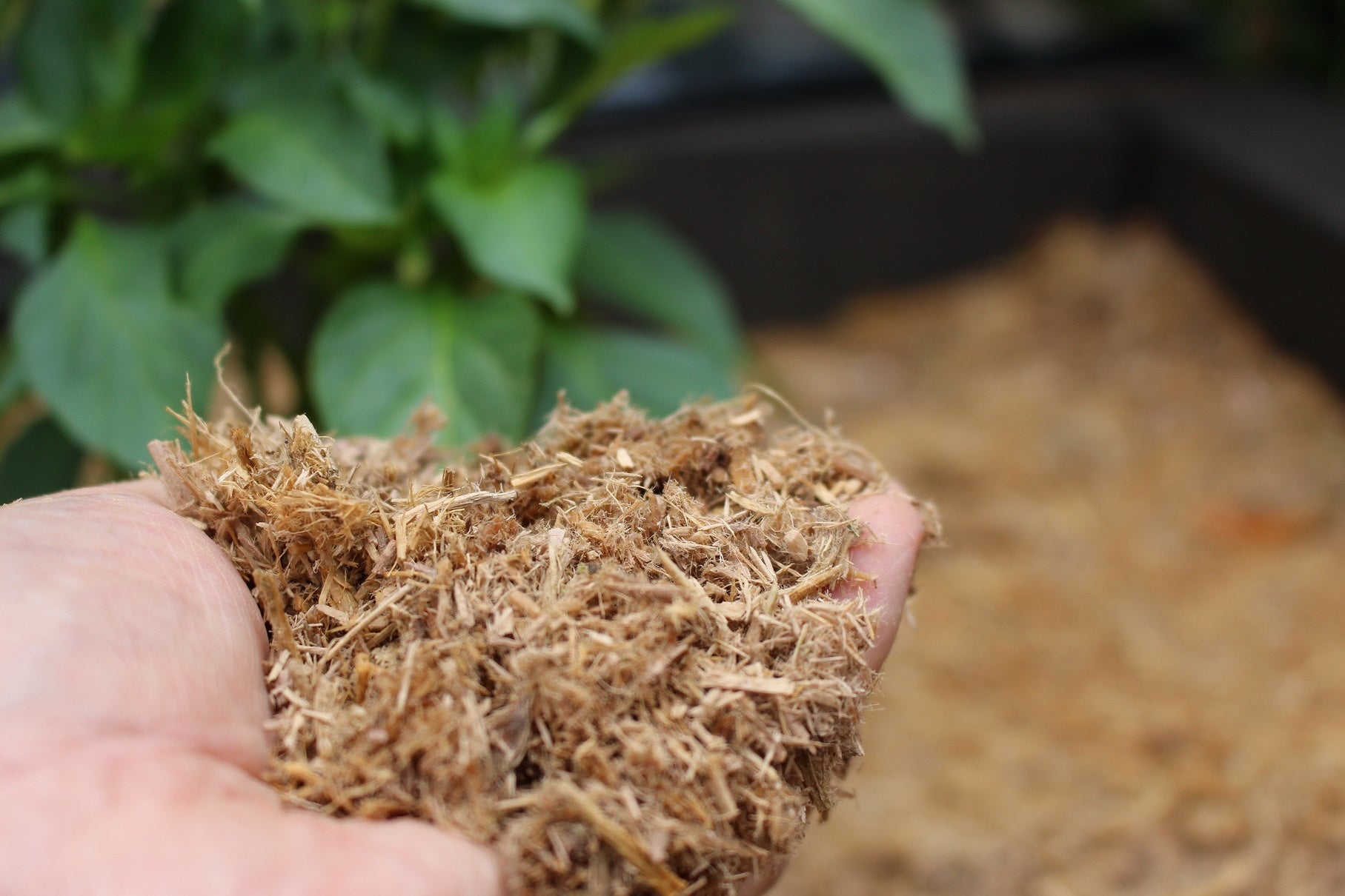 間伐材などから作られた国産木材チップを粉砕処理し、これに国内初の特殊加工を施すことで、野菜や花卉の栽培に適した性能を付与した木質培地です。親水性に優れ、培地全体に水を浸透させる効果を発揮します。また、国内で管理して製造しているため、植物栽培用培地として安定した品質でご提供可能です。