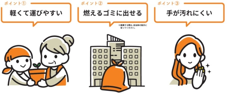 土壌と比べて軽量で、手が汚れにくいほか、不要時には燃えるゴミとして廃棄ができる、扱いやすい培地です。