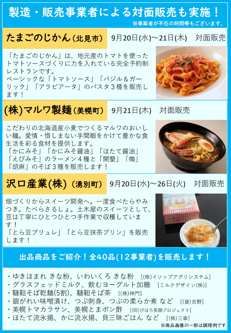 ・オホーツク管内商品のPRおよび販売 ~ 事業者数:12社、商品数:40品