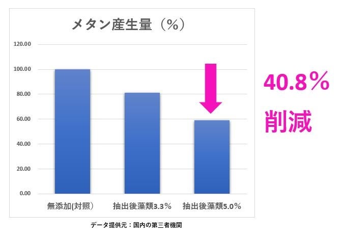 ◆アルヌールの培養している微細藻類からフコキサンチンを抽出し、抽出後の微細藻類によるインビトロ法によるメタン産生量削減効果