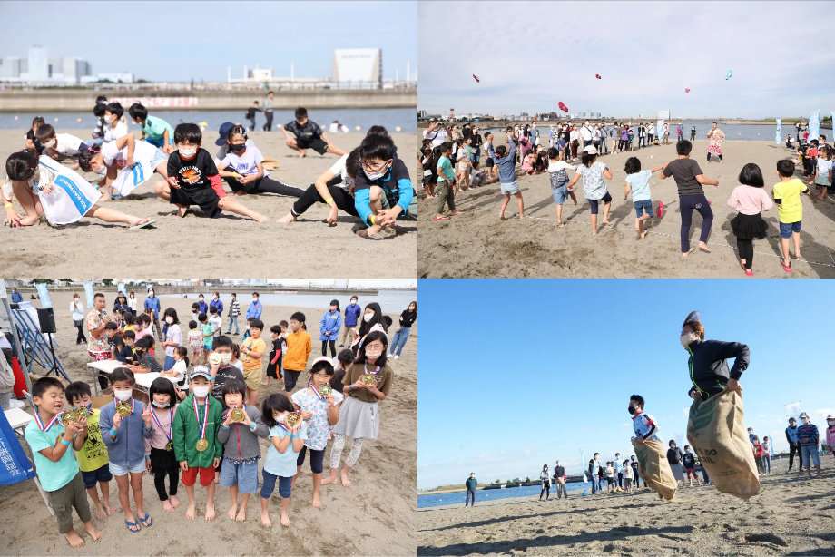 ビーサン跳ばし、砂袋リレー、レスキューレースと楽しいコンテンツがたくさん!