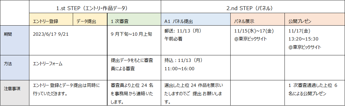 『学生プロジェクトデザインコンペティション2023』では、好評につき、展示会場内作品展示エリアを拡大したため、この度エントリー受付を9月21日(木)まで延長しました。また、当日会場で展示をする1次審査通過作品を24点から40点に変更し、当日会場で展示いたします。