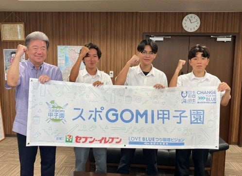 2023年8月19日に行われた『スポGOMI甲子園2023・沖縄県大会』で優勝した嘉手納高等学校、読谷高等学校、美里工業高等学校の合同チーム3人組の「Sunny」が、大会での成果を報告するためスポGOMI甲子園の会場となった中城村の浜田村長を表敬訪問しました。