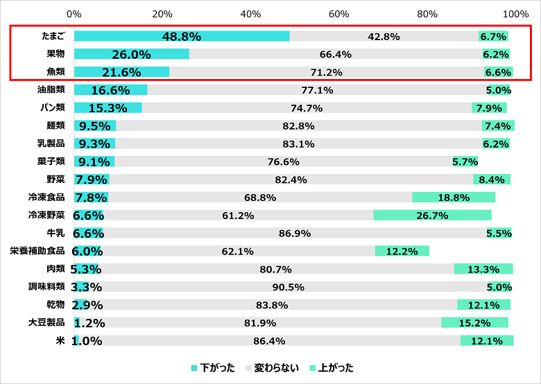 6.たまごは2人に1人、果物は4人に1人、魚類は5人に1人が使用頻度を減らしている実態