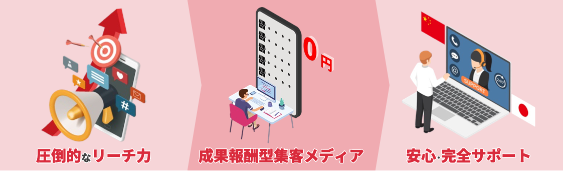 中国本土の皆様の日常ライフスタイルに合わせたプラットフォームでメディア、サービスを構築しているため、効果的な集客が可能となります。