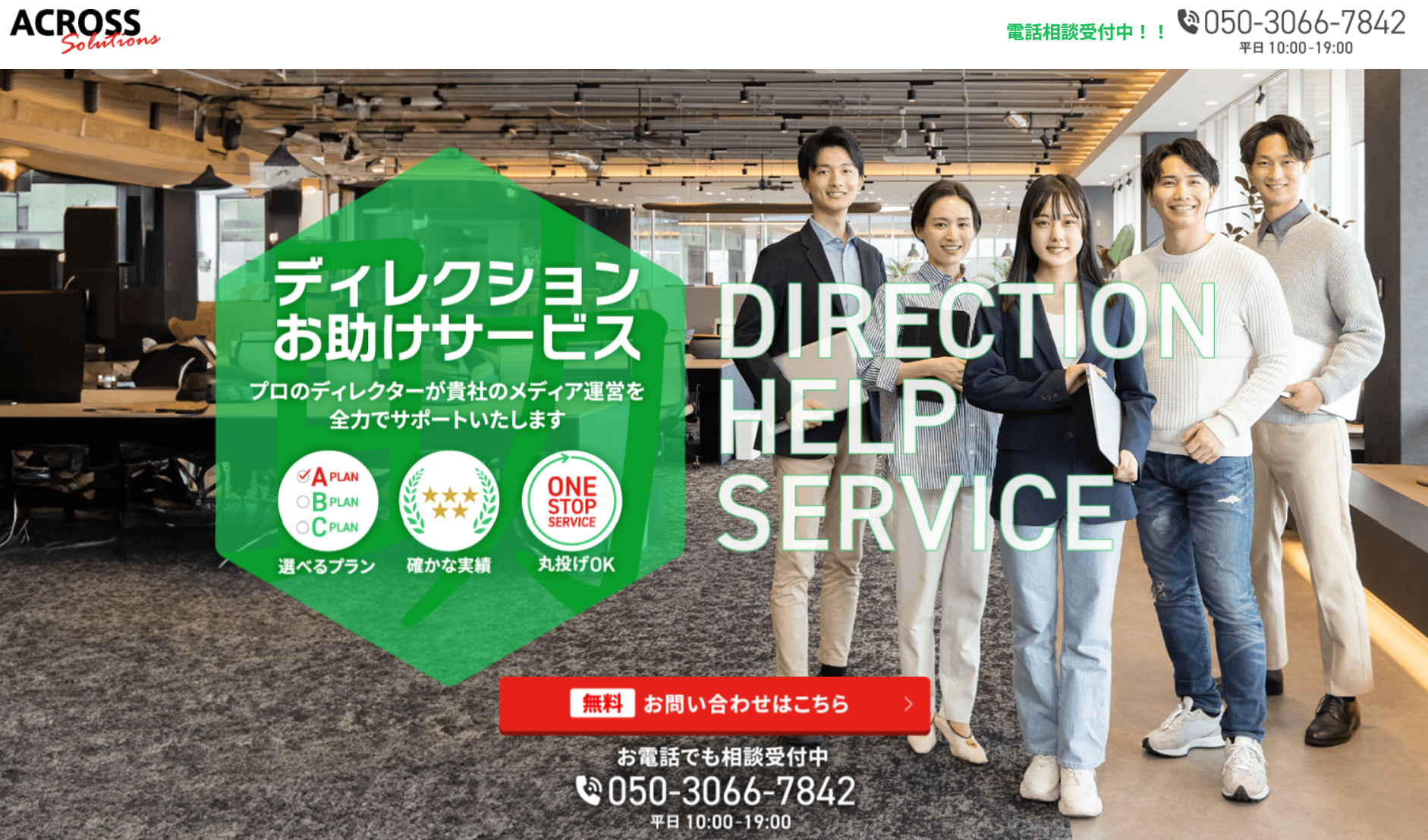 そうした背景を受け、アクロスソリューションズは自社/クライアントワーク双方での複数のメディアグロース実績を持つディレクターによるメディアディレクションのアウトソーシングをサービス化しました。