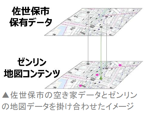 佐世保市における空き家の安全管理効率化と市場流通促進を目指し、佐世保市が持つ空き家データとゼンリンの地図データを掛け合わせることで、危険空き家や市場流通可能な空き家予備群の把握や早期特定について共同で検討します。
