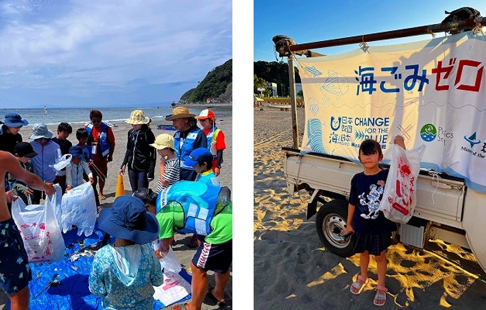 逗子海岸では鎌倉の小学生などが参加し、リーダー真壁克昌氏が指揮を執り、海を安全に楽しむ講習会と海洋ごみの勉強、そしてビーチクリーンを実施しました。「海と日本プロジェクト・CHANGE FOR THE BLUE」の、のぼり旗を海岸に立てて、さらに逗子ビーチクラブの軽トラックにバナーを掲出しました。