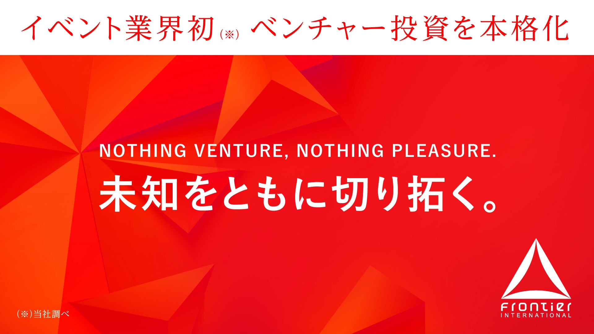 私たちフロンティアインターナショナルは、その社名の通り、何よりも開拓者精神を大切にしております。2022年に実行したベンチャーキャピタルへのLP出資に続く、この度の自社ベンチャー投資室の設立は、未来への挑戦そのものと位置付けております。弊社グループが創り出す「心を動かす体験創造」によって起業家の成長を様々な角度から支援することで、スタートアップのエコシステムに貢献し、プロモーション産業の可能性を拡げ、魅力ある未来社会の実現を目指してまいります。これからも挑戦を続けるフロンティアインターナショナルに、是非ご期待ください。