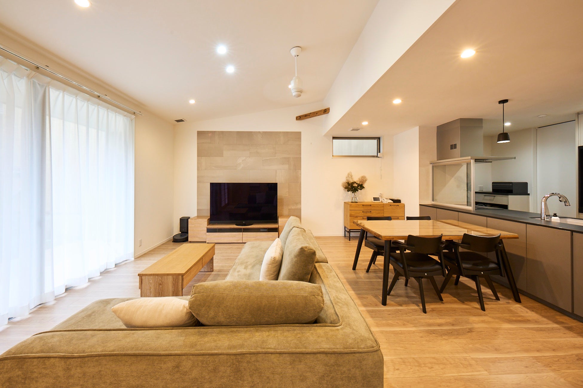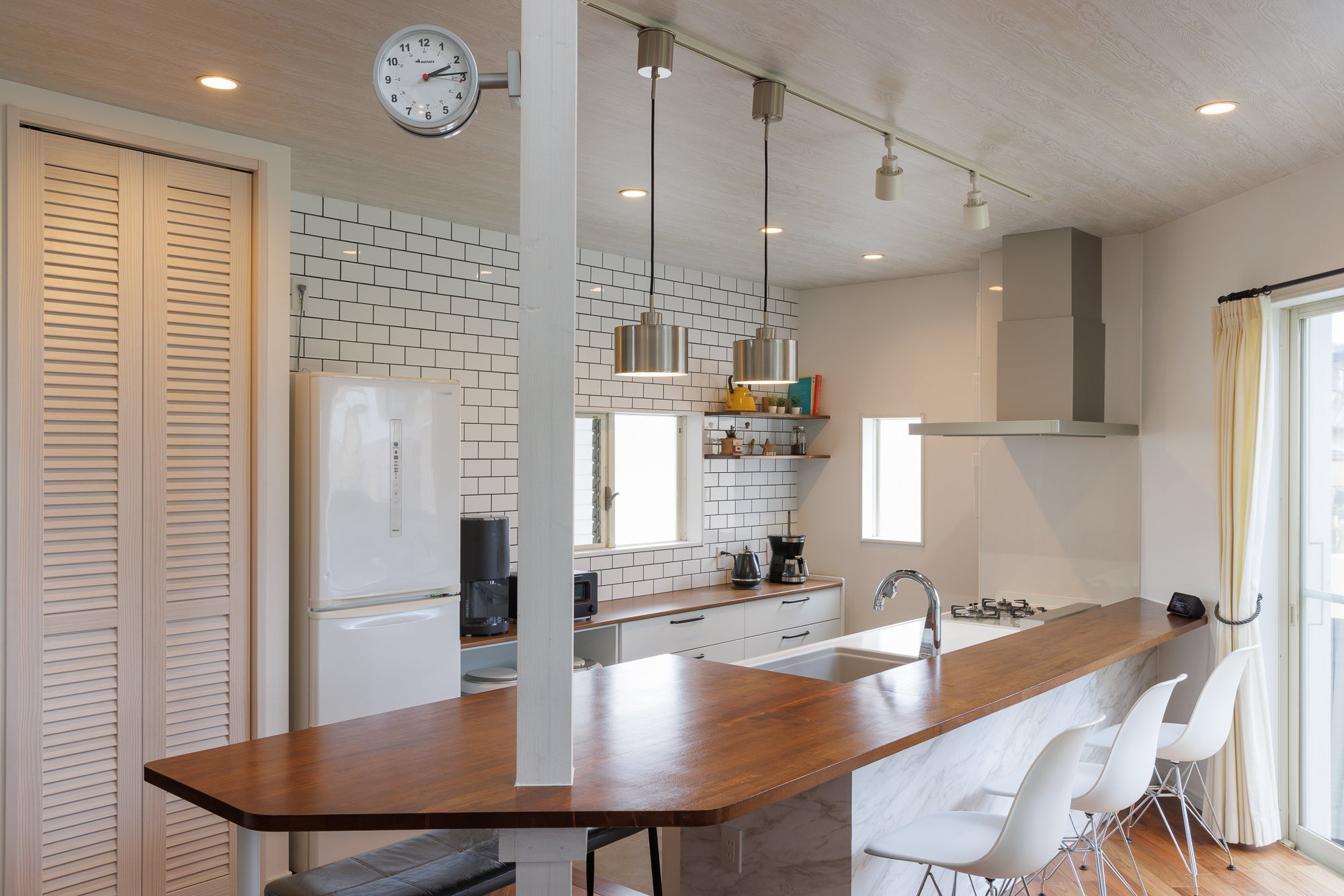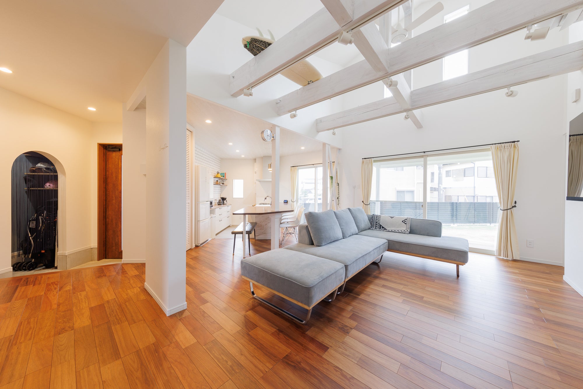 評価ポイント:既存の梁を活かし、解放感を作り出すとともに、キッチン空間は家事動線を考慮、カリフォルニアスタイルで統一し、住まいへのこだわりを高い次元で実現している。