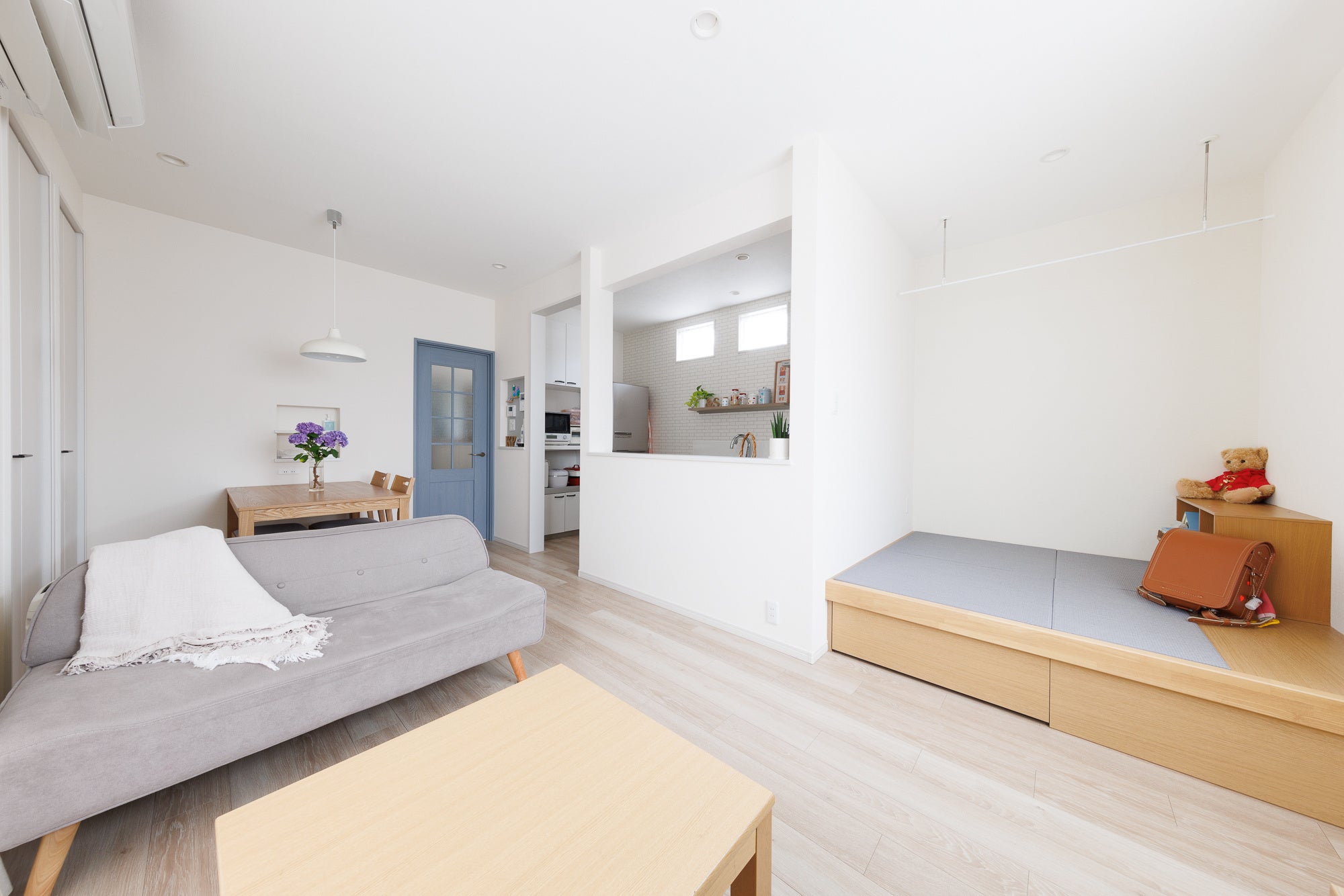 評価ポイント:築年数を感じさせない「ベリティス クラフトレーベル」の内装ドアや明るい床の色が新しさを演出するコーディネイト。無駄のない生活動線と共同利用空間を設け、二世帯が暮らす上でほどよい距離感を実現。キッチンから子どもの様子を見渡せたり、プレイルーム兼用の小上がりなどコミュニケーションの場づくりの工夫が散りばめられています。