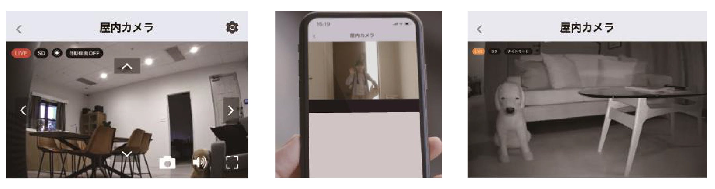 LIVEカメラの視聴 ・カメラの回転・SD·HDの切り替え ・ナイトモード切り替え ・スナップショット撮影 ・動体検知録画