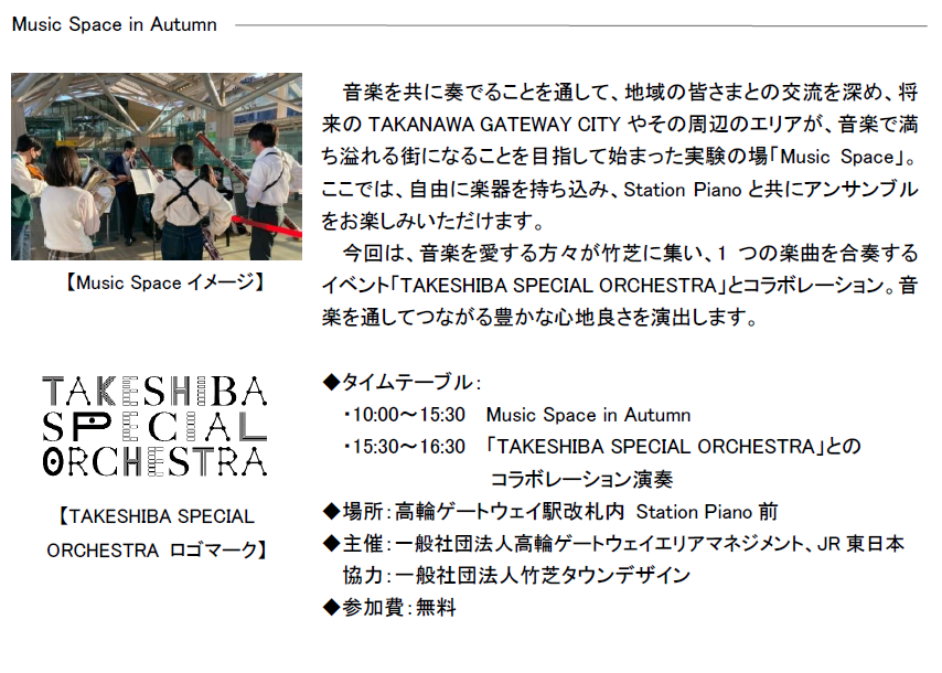 ※本イベントの詳細はTAKANAWA GATEWAY CITY公式サイト、TAKANAWA GATEWAY CITY Facebookにて、9月22日以降掲載のお知らせをご確認ください。