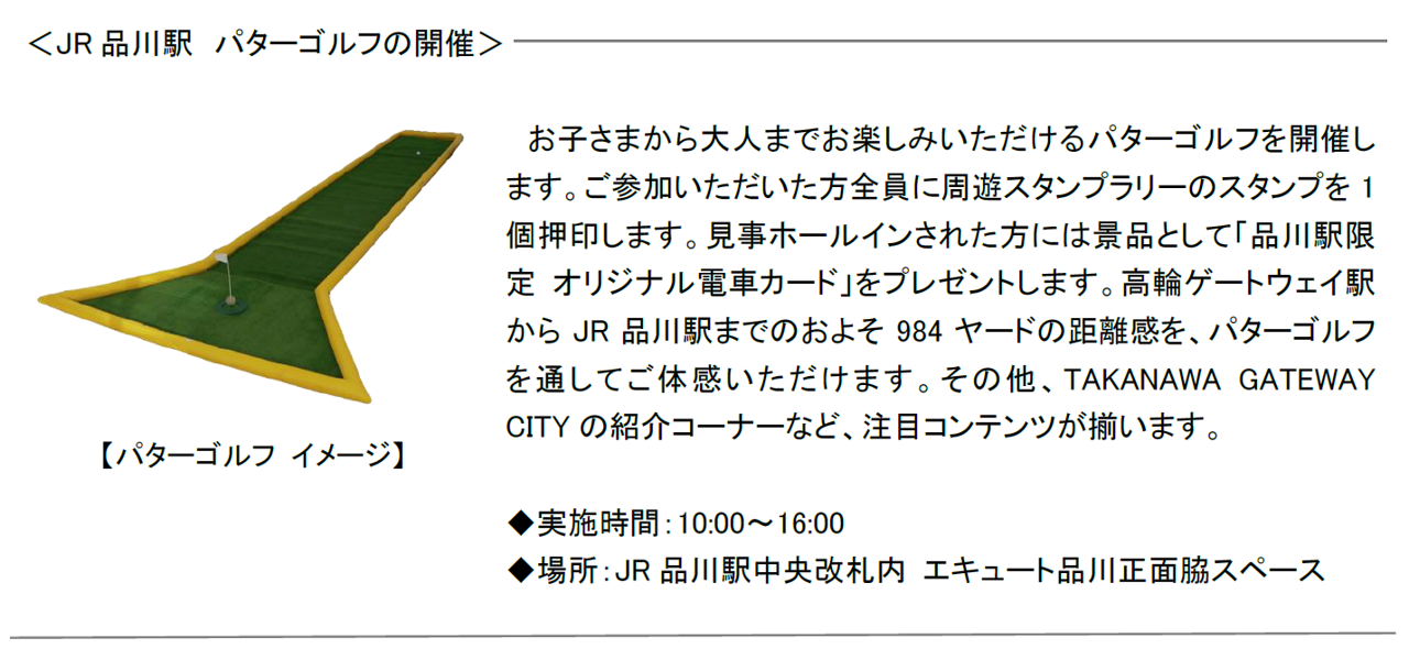 ・さらに、高輪ゲートウェイ駅前道路(補助332号線)におけるUR都市機構出展ブースおよびウォーターズ竹芝においてスタンプを集めると、高輪ゲートウェイ駅 デッキ上の抽選会場においてそれぞれ1回ずつ追加で抽選にご参加いただけます。